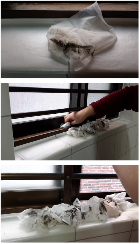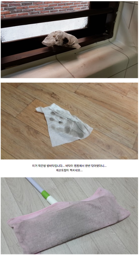 창틀닦은 걸래입니다...ㅡ.ㅡ 걸래 2개가 만진창이입니다...