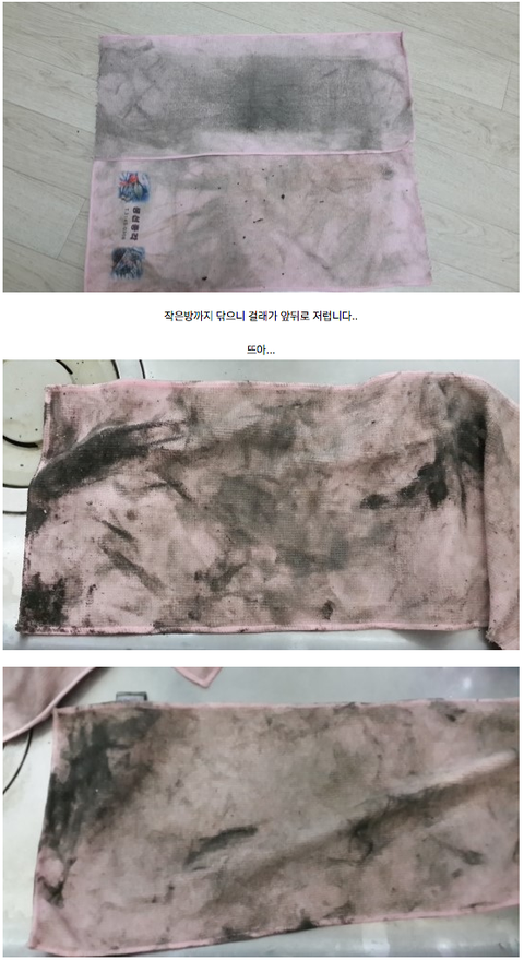 그런데... 청소하는 양동이 물이 새카만걸 봤지요.. 저걸로 청소를 하면 깨끗할까?? 라는 의구심이 자꾸 들었습니다