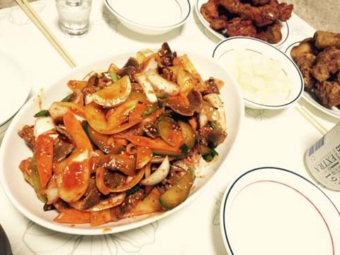 한접시의 탕수육을 담아내기 위해, 주방은 온통 기름칠을 당했나보다