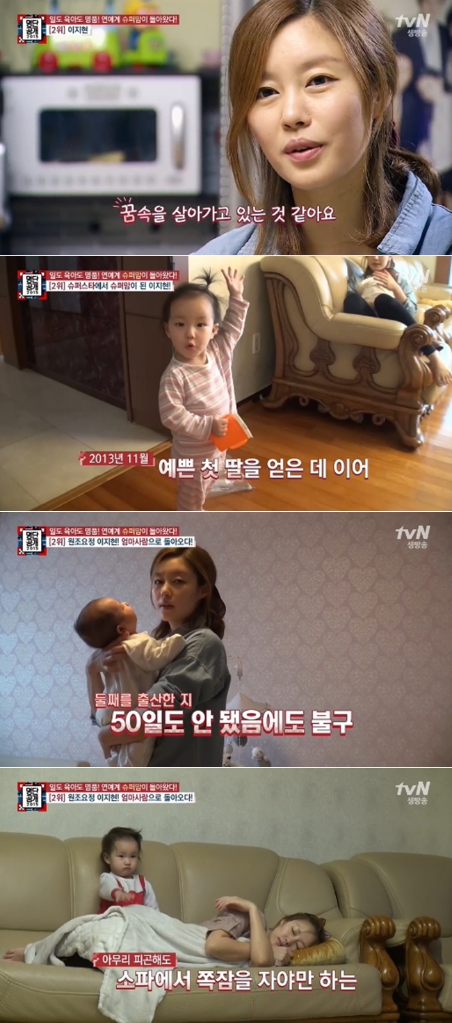 오 는 4월1일 tvN '엄마사람' 방송을 앞두고 있는 이지현은 아이들에게 소중한 추억을 남겨주기 위해 출연을 결심했다고. 아이를 위해 망가짐도 불사하는 모습은 물론이고 출산한지 얼마 되지 않은 상황에서 산후조리도 미루고 아이들에게 집중하고 있었다.