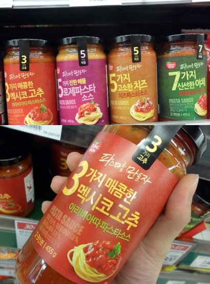 맥시코 고추가 3개나 들어있다는 아라비아따 파스타소스를 골랐습니다. ㅋㅋㅋㅋ