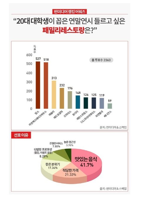 20대 대학생 선정 가장 가보고 싶은 패밀리 레스토랑