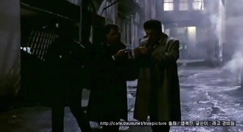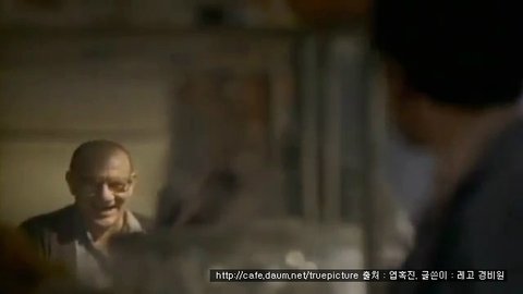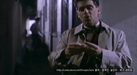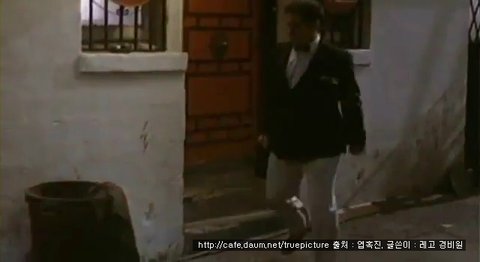 그리고 문구를 읽자, 갑자기 뒤에 배경에서 보이는 남자가 달려오다가