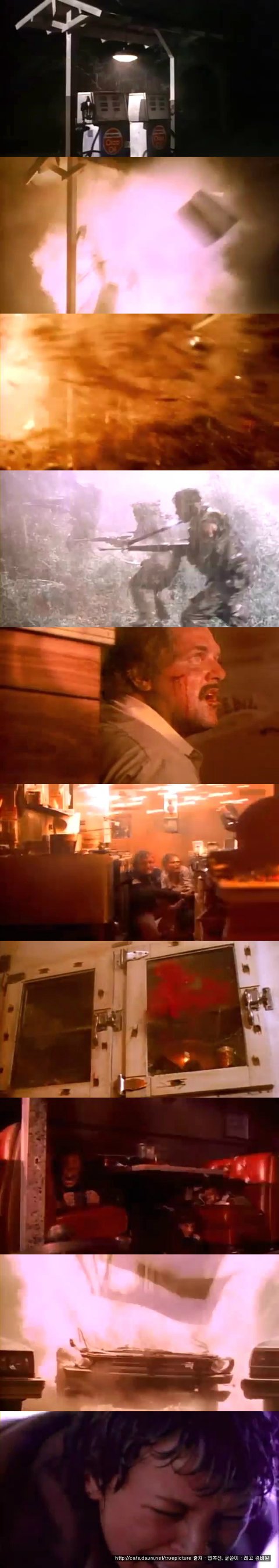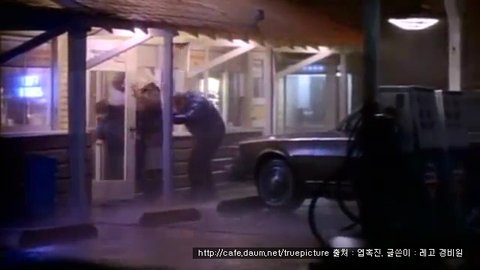 주유소도 파괴되고, 가게 안으로 들어와 가게를 엉망으로 만들기 시작하는 총알들...