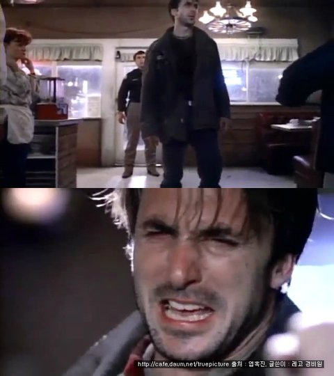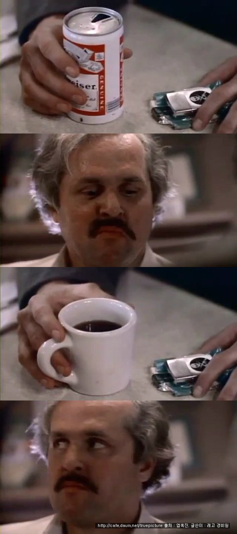 그런데 휴게소 주인이 이 남자를 주시하는데, 갑자기 그의 손에 쥐어진 커피잔이