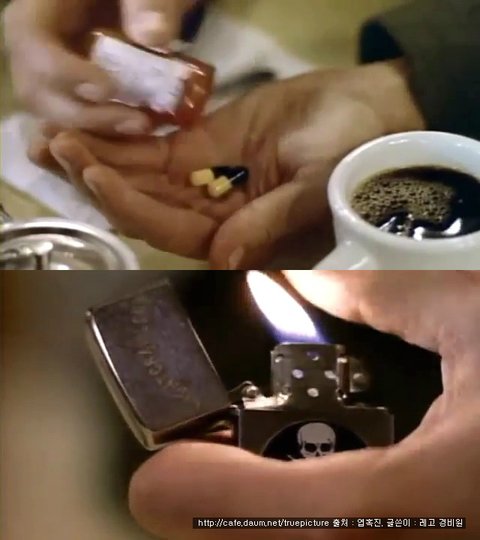 "나이트크롤러"라고 새겨진 지포라이터를 딸깍이며 라이터 불꽃을