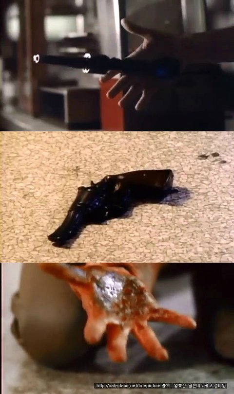 갑자기 총이 고온으로 변하더니, 총이 녹아버립니다...