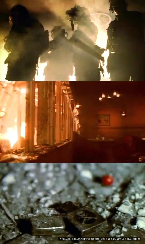 그들이 파괴한 휴게소와 상처입은 사람들, 불타는 잔해들은 변하지 않고