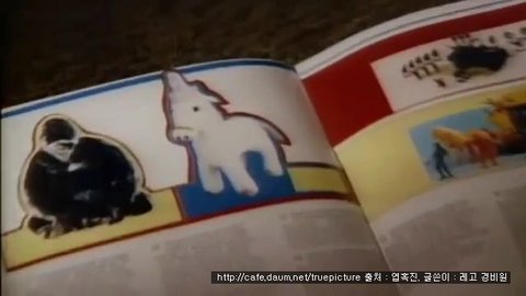 그런데 장난감에 싫증을 느끼다가, 잡지책을 열어보더니, 흰 색의 유니콘 인형이