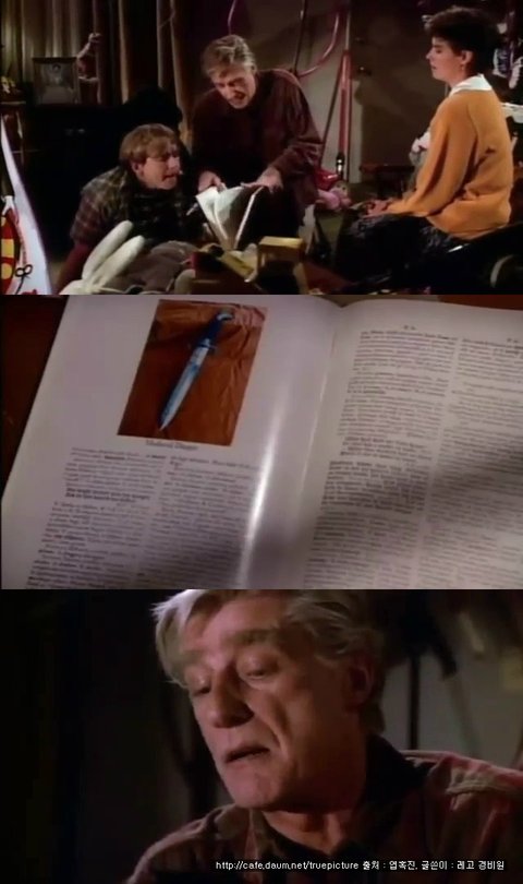 꺼내드는 아빠... 조심스레 칼 사진이 나타나있는 사전을 펼쳐 토비에게 보여줍니다.