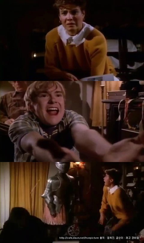 그러자 현실로 나타난 칼... 토비가 칼을 쥐려 하자 아빠는 그를 막아서고 대신 칼을 집습니다.