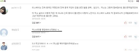 엑소팬이 별점테러를 했다는 증거도 없는데 왜 자꾸 소환해서 할말 안 할말 다 하는지 모르겠네 미쓰에이 앨범에서까지 소환되는거 보면 정말 잘났긴 한가 보네 엑소팬이 별점테러를 했던 안했던 이런식으로 욕 하는건 어떻게도 합리화 되지 않는다 니들은 사람 죽이는 말 해놓고 몇분후에 다 까먹잖아 제발 눈 앞에서 못할 말은 인터넷 상으로 하지 말자 엑소안티들 말고도 악플 다는 사람들한테 다 하는 말이야 아무리 멘탈이 강한 연예인이어도 사람은 사람이야 니들이 무심코 던진 돌에 맞아 죽고 나서야 고칠래? 저번에 연예인은 까이는 만큼 돈 많이 벌고 돈 걱정 없이 살 수 있으니깐 욕먹어도 된다고 그러던데 물론 연예인이 일반인 보다 멘탈이 단단해야 하는건 당연해 하지만 니들이 연예인을 욕하는건 절때 정당화 안돼ㅠㅠ 혼자 합리화 좀 시키지 말고 앞에서 못하겠으면 악플도 달지마 온갖 성희롱에 패드립에 쓰면서 더럽다는 생각 안들어?