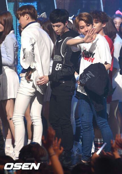 오늘엠카 백현이 손 꿈틀