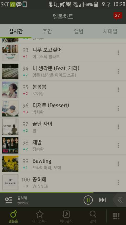 공허해 100위 진입했어! 열심히 스밍 돌리자 지금 바로 돌리러ㄱㄱㄱㄱㄱ 컴백때까지만 있게 해주자