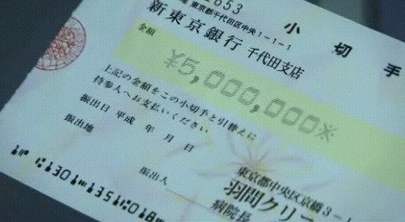 고햐꾸마엥! 여자는 오백만엔 이라는 수표를 보고 굉장히 놀랍니다