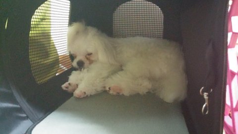 꼬미는 첫 미용 후 스트레스로 한동안 고생을 했어요.