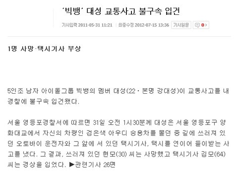 대성의 전방미주시 교통사고
