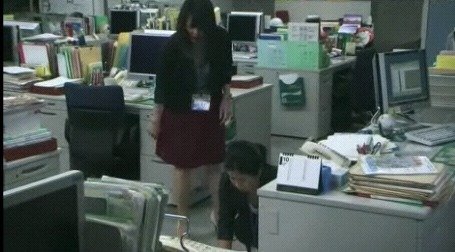 아까전에 여주인공은 상사한테 혼나다가 상사 물건까지 엎지르면서 같이 주웠잖아요?