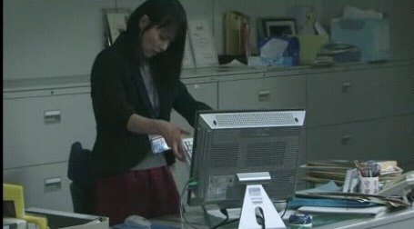 여주인공은 열심히 종이를 넣어서 처리해 버립니다