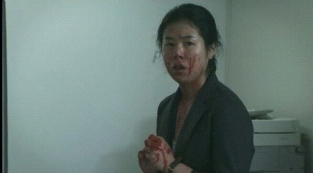 갑자기 자신의 손을 기계안으로 밀어버리는 여주인공