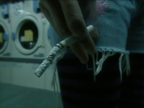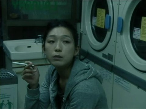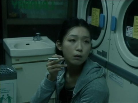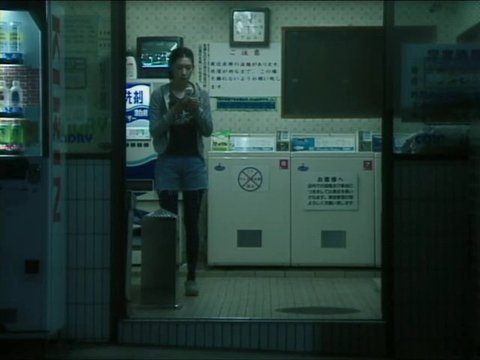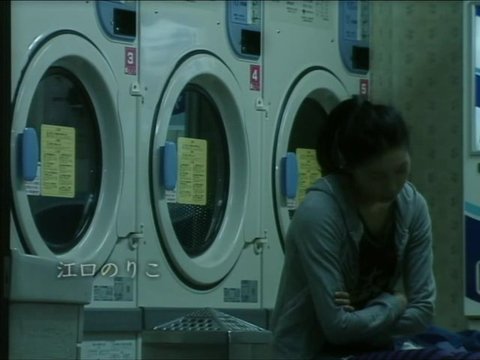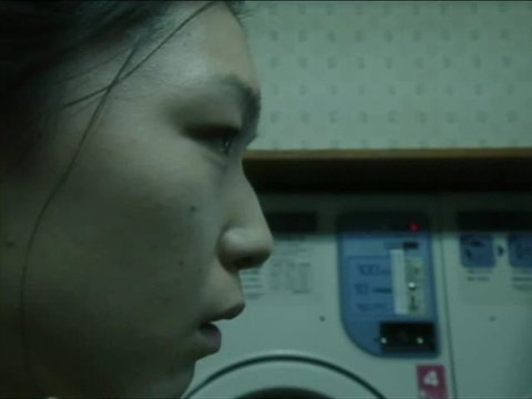 야심한 새벽...한 여자가 빨래방에서 지루한 시간을 보내고 있습니다