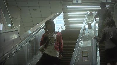 여자는 이상한 낌새에 한번 뒤를 돌아봅니다