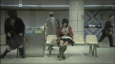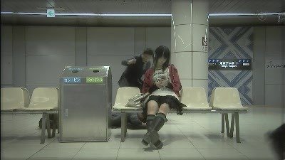 다음 지하철을 탈려고 앉아서 기다리는 여자