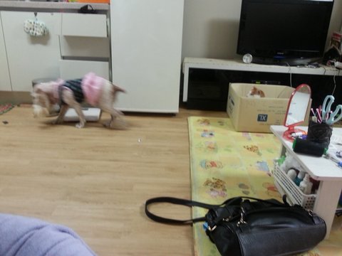 홍군 빨리달려가 누나 쉬아 패드를 최선을 다해 치워주고