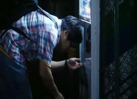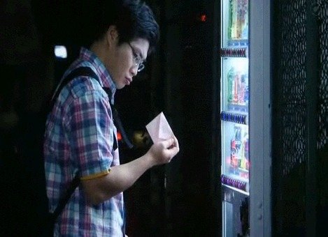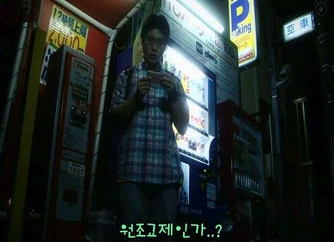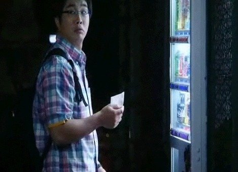 어떤 한 남자가 자판기에서 음료수를 뽑아먹을려고 하네요