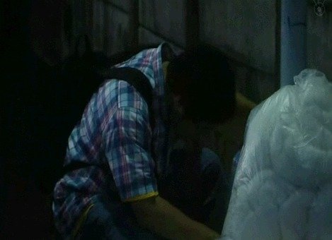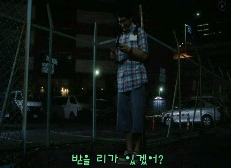 순간 쿵!하는 둔탁한 소리와 함께 남자는 겁을먹고 놀라 뒤를 쳐다봅니다