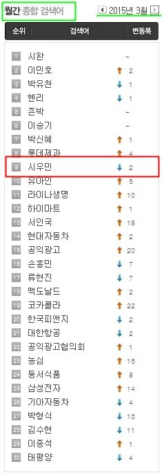 한국광고총연합회 시우민검색어랭킹 2015.3