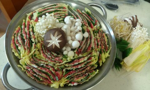 한동안 여기저기 떠들썩하던 밀푀유나베 저도 한번 해먹어 봤습니다~~ 육수에 멸치 다시마 마른새우 표고 대파 양파 넣고 푹 우려내 건더기 다 건져먹고 만들어먹는 죽이 진짜 끝내주네요^^