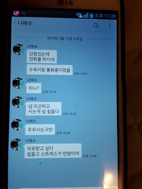 퇴근하여 잠든 남편 폰에서 음악소리가 들려 음악을 끄니 톡이 와있다