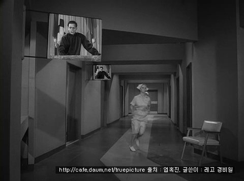 도망친 여인을 붙잡는 순간에, 복도의 1950년대 상상력이 만들어낸