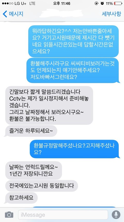 아직 씨씨티비는 확인을 하지 않았습니다. 환불을 정확한 이유없이 못해주겠다고만 하고 연락도 제대로 받질 않아 정확하게 조언들을 듣고 입장정리를 하고서 씨씨티비를 확인하고 싶어서 기다리고있습니다.