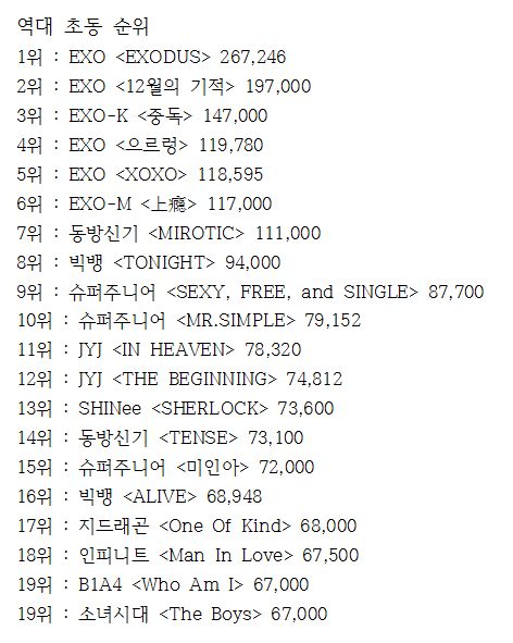 3대기획사 빼고는 인피니트가 1위구나 진짜 자랑스럽다