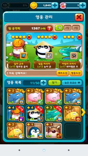 영웅 키우는 거랑 기타 여러가지 콘텐츠가 많은 게임입니다.