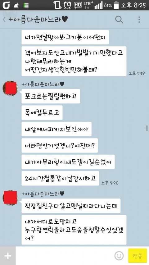 제 계정이 스토커가 차단해서 직접적으로 뭐라하진 못했고 한살아래선배 시켰습니다.