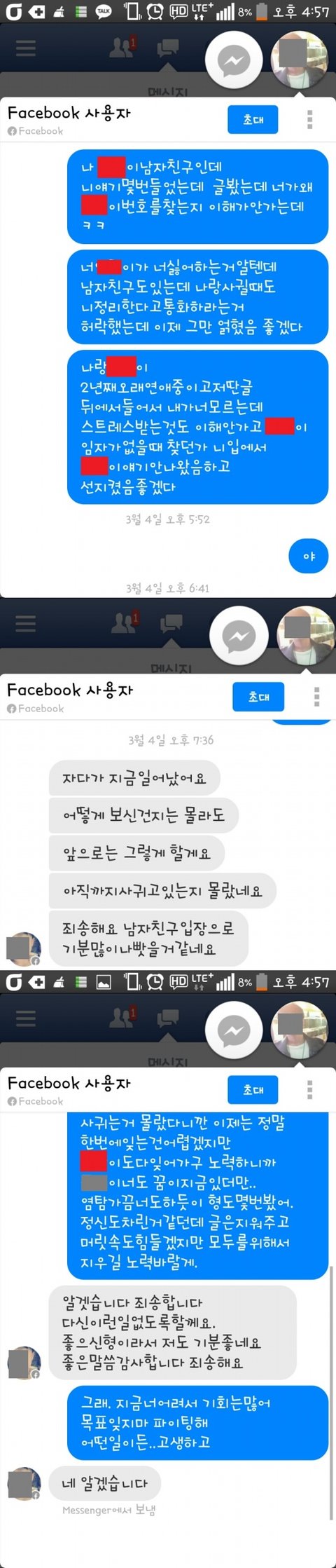 여자친구는 잘 얘기했다고했고, 번호도 바꾸고 저희는 여전히 사랑하고 있었습니다.