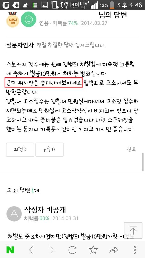 그러다 4월 6일 집을 가는도중에 오랜만에 스토커놈 뭔일있나 이름 검색해볼려고 하는데