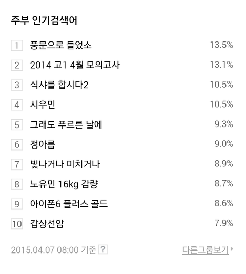 밑에 4시보고 그냥 지금들어가봤는데 또 주부 인기검색어에ㅋㅋㅋㅋㅋㅋㅋ