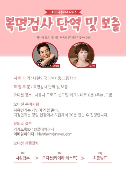 "복면검사" 중고생 단역 및 보출 오디션 진행합니다!