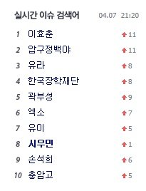 엑소랑 시우민 떴네. 슈키라 때문인가??