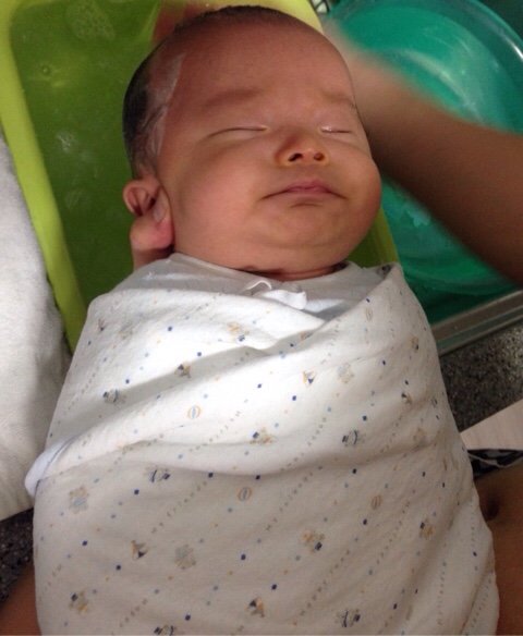 간호사님과 함께 아기를 목욕시켰다.