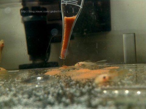 바다새우알인데 알 상태로 사서 소금물에서 직접 부화시켜서 먹이는 먹이죠.