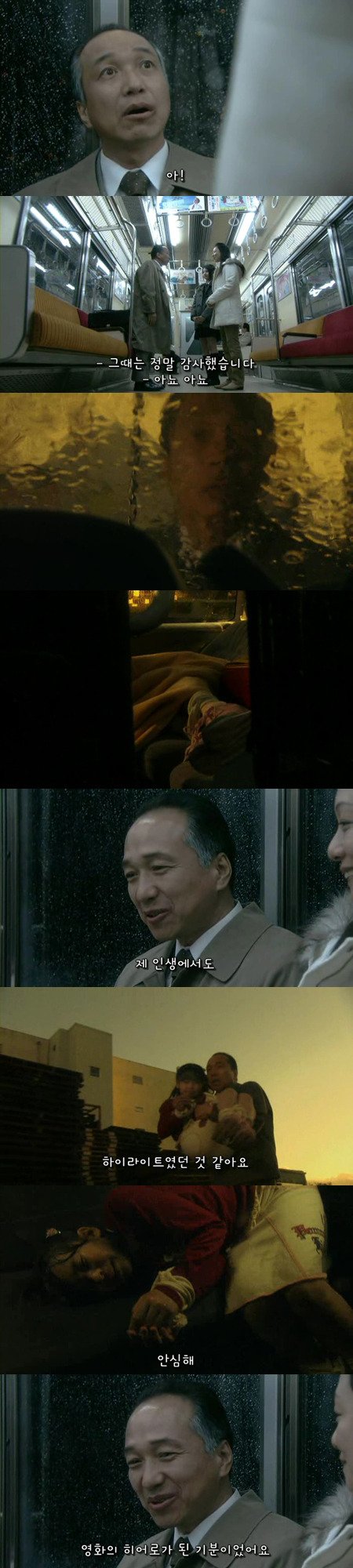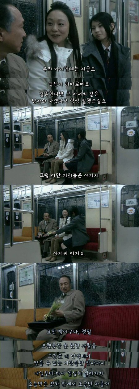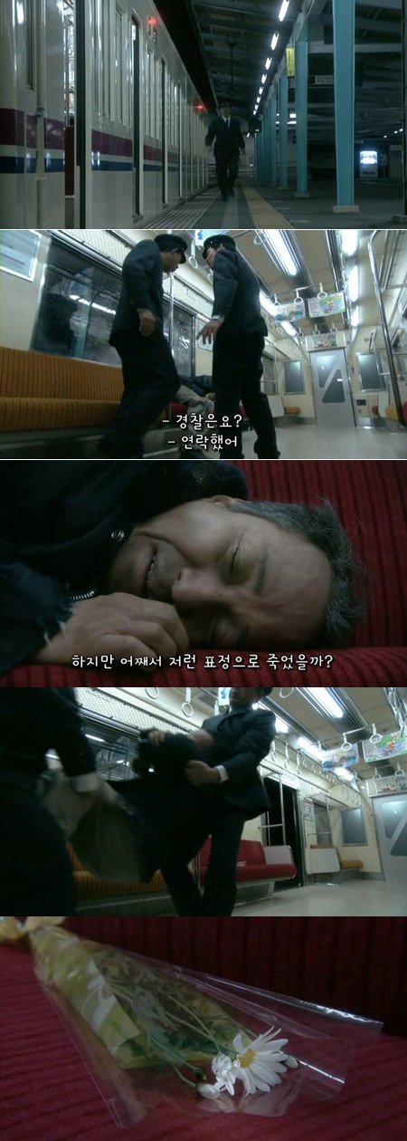 그리고 남자는 처음으로 전철에서 잠을 잡니다.