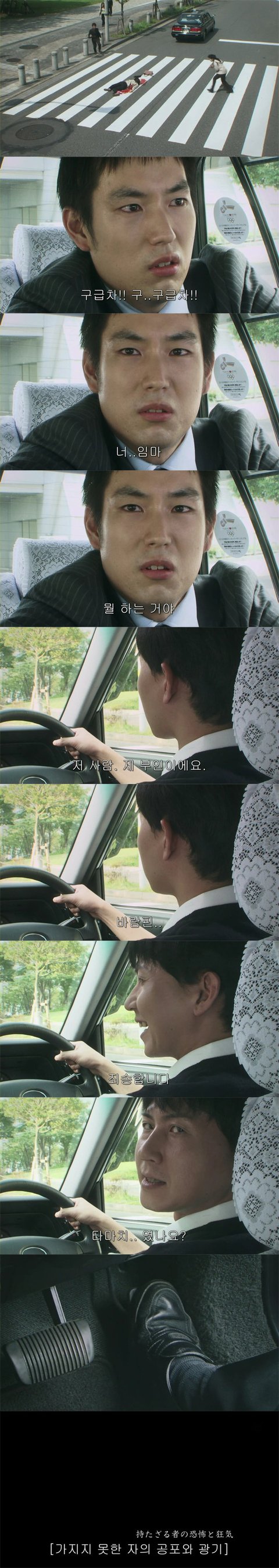 사람이 건너고 있는 것을 본 남자는 멈추라고 다급하게 얘기하지만 택시기사는 듣지않습니다ㅠ