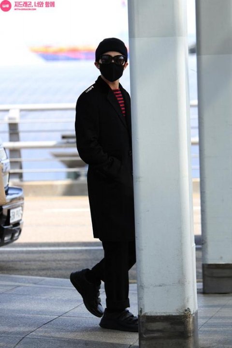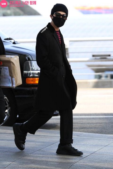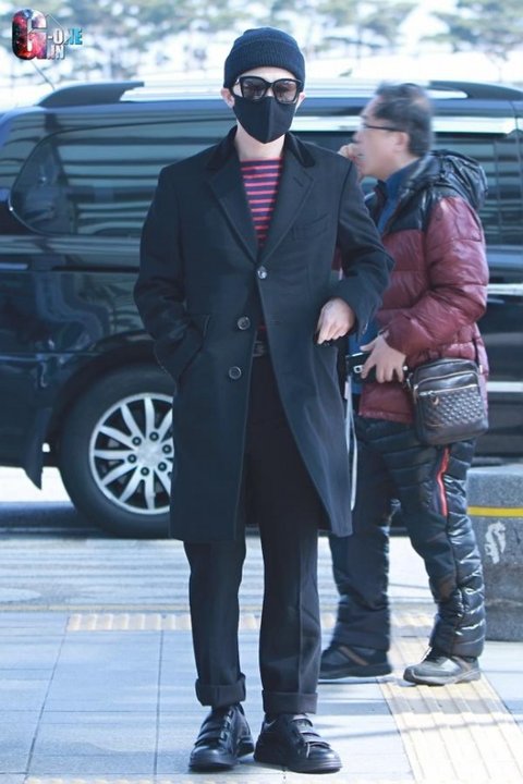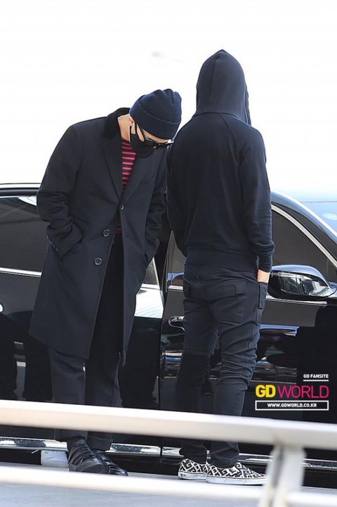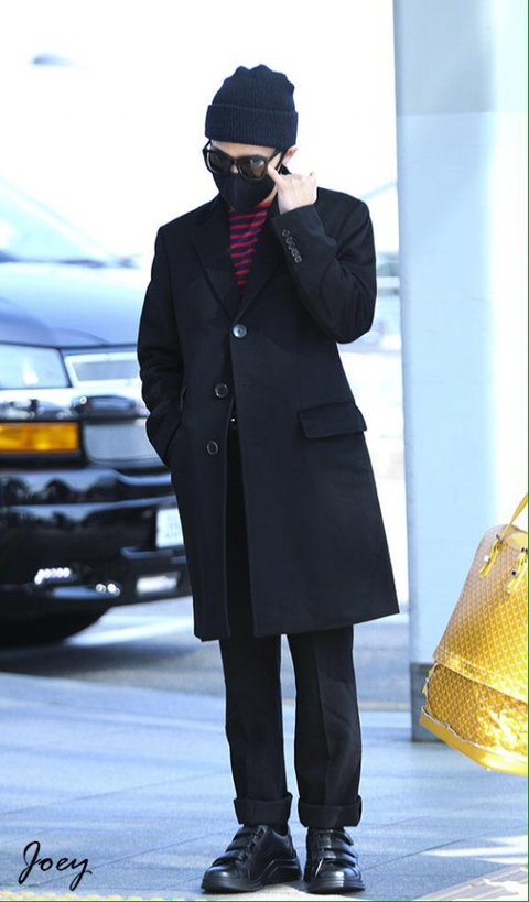 올블랙으로 깔끔하게 입었는데도 특별해보이는 지드래곤의 공항패숀