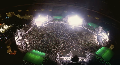 공연 중에는 각 스테이지에서 레이저를 쏘기 때문에 상공에서 별모양을 볼 수 있다.