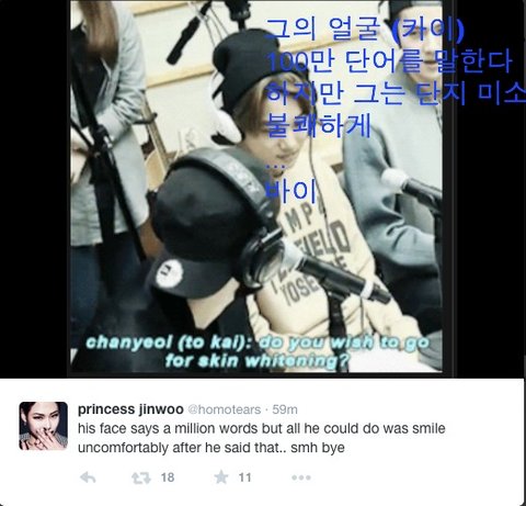 찬열 카이의 피부를 조롱피부가 그와 함께 번개 할 그에게 말했다it went "viral" everyone is talking about it이 괜찮 없습니다그러나 우리는 가자..모든 한국어 아이돌 공격적인 짓을 했다.......하지만 그것을 많이 찬열 않습니다!!!!!!그래서 외국 팬 버스트!